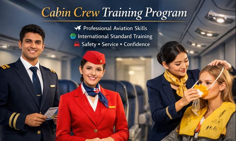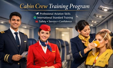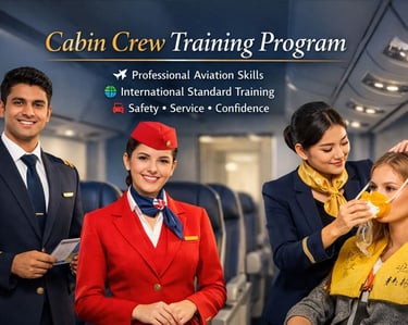 The Cabin Crew (Air Hostess & Air Host) program is designed for individuals who dream of working in the aviation industry and representing airlines with confidence, professionalism, and excellent customer service. Cabin crew members ensure passenger safety, comfort, and in-flight service. This course prepares students to handle emergency situations, deliver high-quality hospitality, and create a positive flying experience.