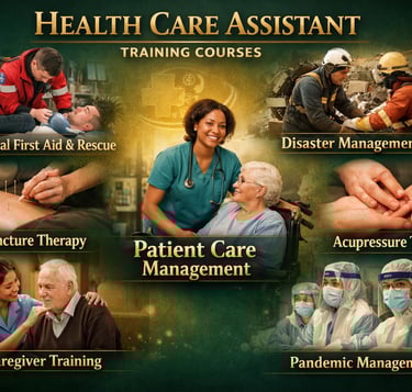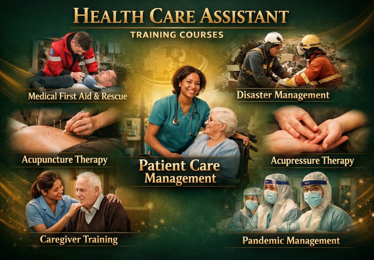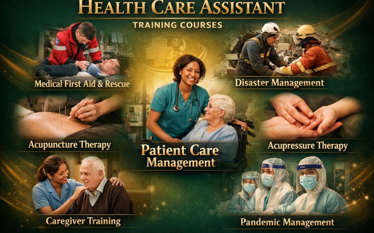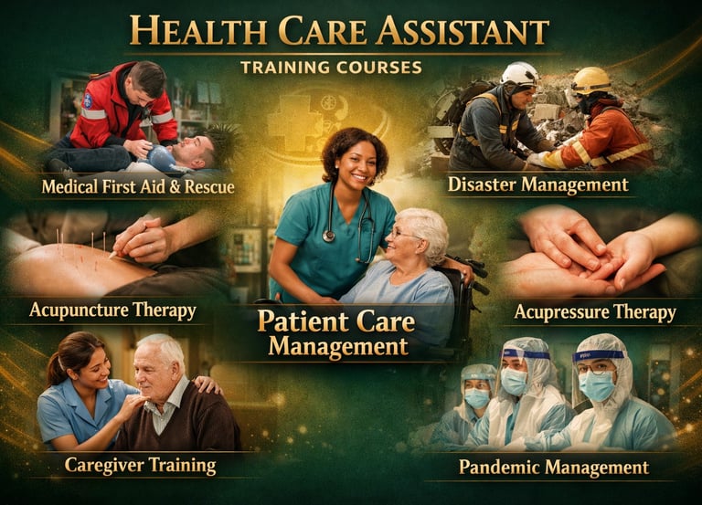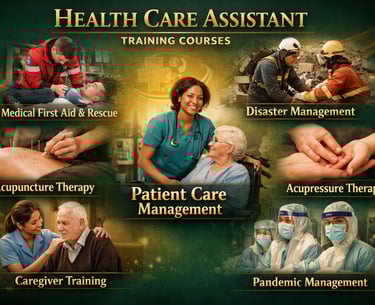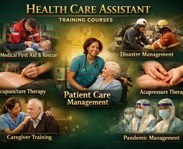 Healthcare & Medical: Medical Billing & Coding, Health Care Assistance, First Aid, Rescue & Disaster Management, Acupuncture & Acupressure Therapy, Patient Care Management, Caregiver Training, Pandemic Management.