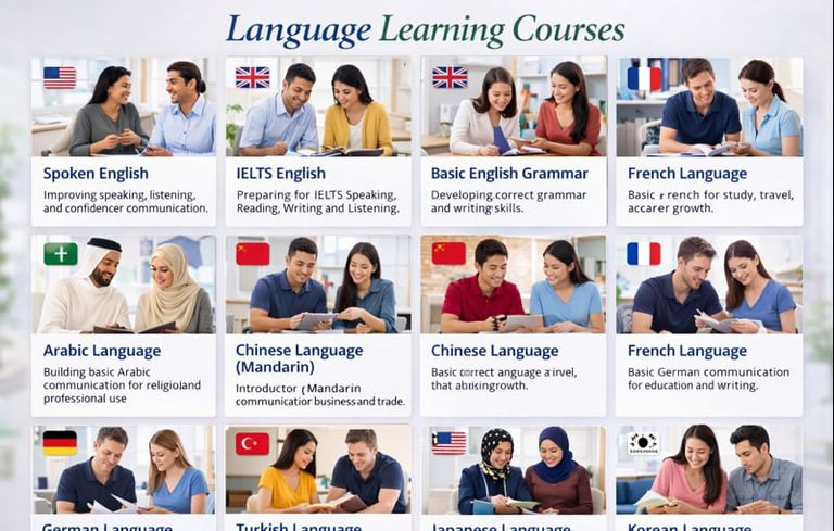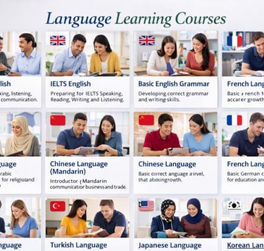 Basic English Grammar Arabic Chinese (Mandarin) French ,German ,Turkish, Bahasa Melayu ,Spanish