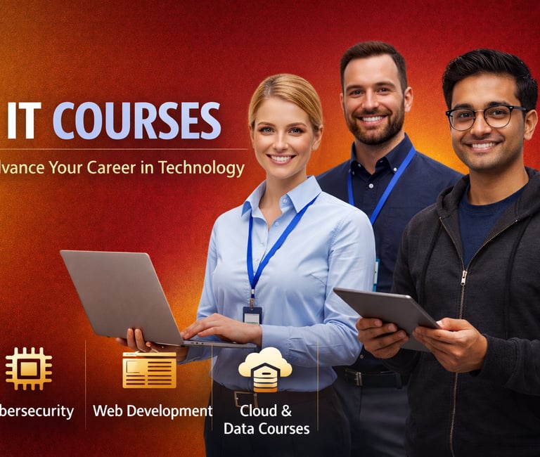Certificate in IT (Web Development,Digital Marketing & SEOArtificial Intelligence ,Full Stack JavaScript Web Development ,Cloud Computing yber Security & Digital Forensics.UI/UX Design & Google UX Design Database & Data Analytics,Mobile App Development Freelancing & e‑business skills Graphic + digital design skills & More New Courses