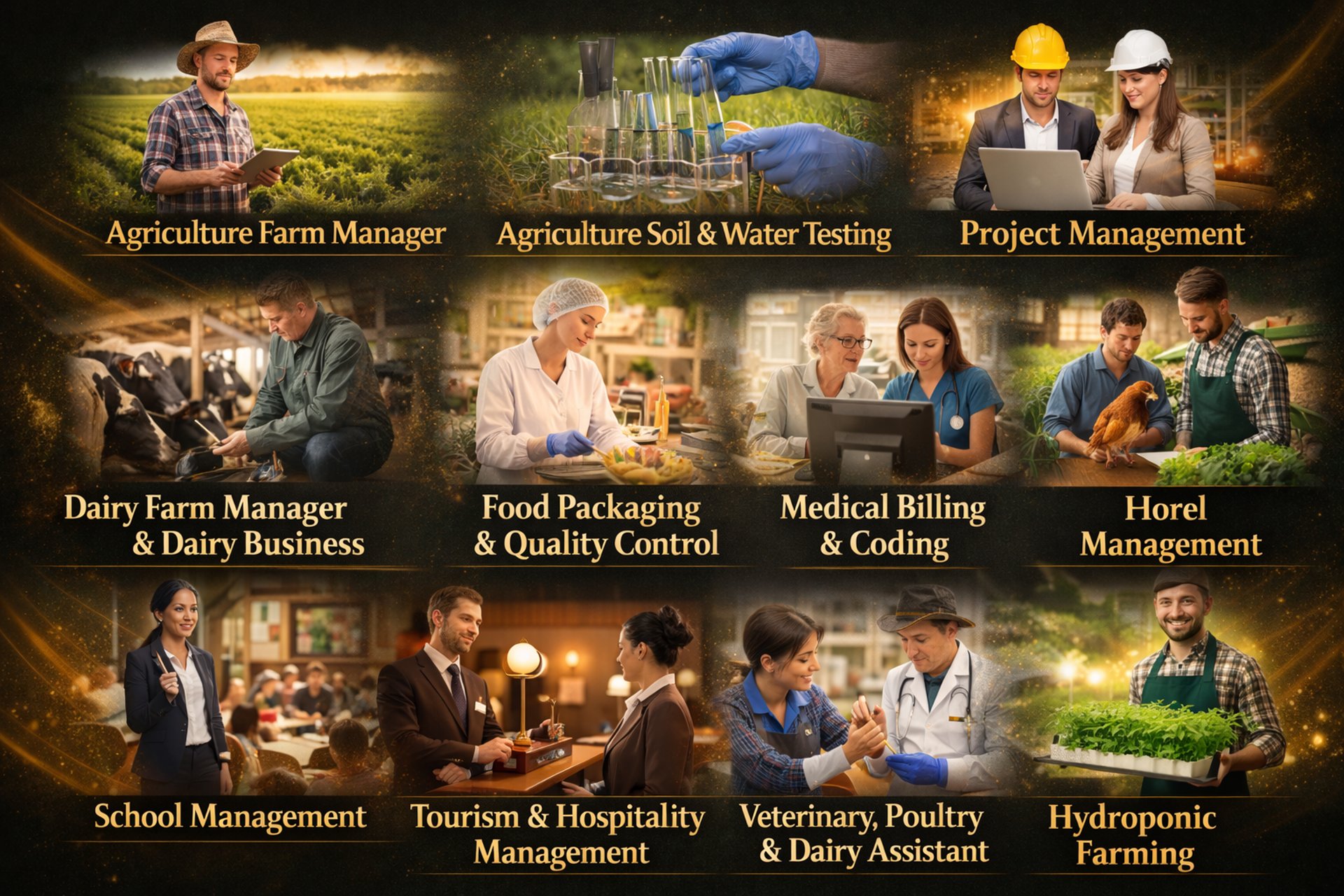 Agriculture Farm Manager, Agriculture soil & water testing Project management, Dairy farm manager and Dairy business food packing and quality control. Medical billing and coding. Hotel management Office